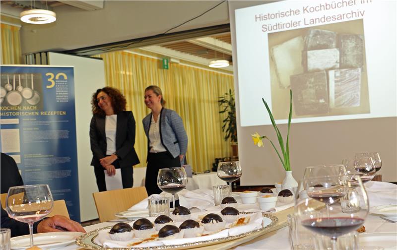 „Nicht nur Urkunden und Handschriften, sondern auch Zeugnisse des alltäglichen Lebens wie Kochbücher liefern wichtige Hinweise zu den Lebensgewohnheiten vergangener Zeiten“, sagte Evi Pechlaner vom Landesarchiv. Das Südtiroler Landesarchiv feiert heuer sein 30-jähriges Bestehen. Dazu organisiert es eine ganze Reihe unterschiedlichster Initiativen. Um Rezepte aus historischen Kochbüchern aus den Beständen des Südtiroler Landesarchivs ging es am 19. April in der Landesberufsschule für das Gast- und Nahrungsmittelgewerbe "Emma Hellenstainer" in Brixen. Die Schüler kochen für geladene Gäste aus dem Kulturbereich ein Menü aus alten Zeiten und lernten so die Vielfalt der Tiroler Küche in den vergangenen Jahrhunderten kennen.