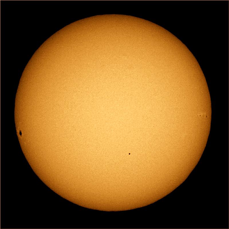 Merkur erscheint von der Erde aus gesehen so klein, dass er mit bloßem Auge vor der Sonne praktisch nicht sichtbar ist. Es bedarf also eines speziell modifizierten Sonnen-Teleskops, um den Planeten Merkur als kleinen schwarzen Punkt vor der Sonne wahrzunehmen.