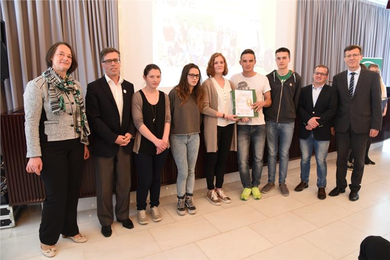 Nach der Präsentation der Übungsfirmen-Highlights des aktuellen Schuljahres nahmen die 20 zertifizierten Übungsfirmen die begehrte Qualitätsmarke aus den Händen von Schulamtsleiter Peter Höllrigl entgegen.