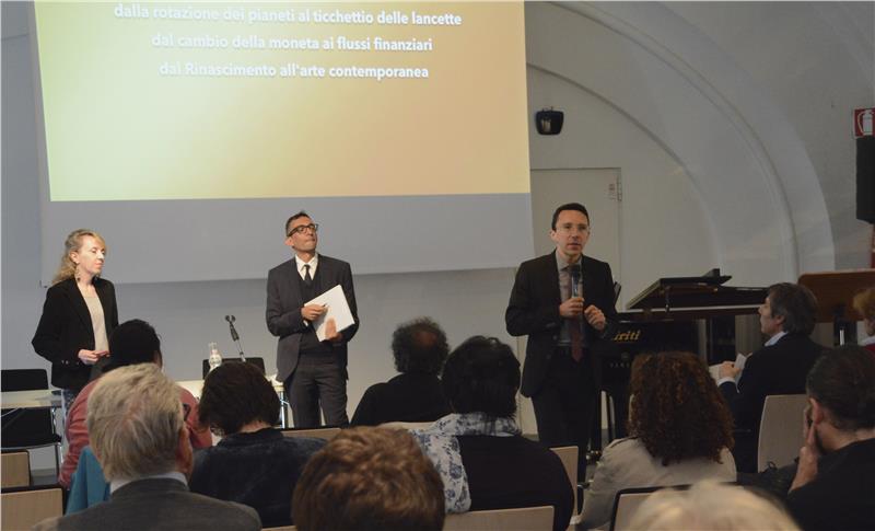 Vom 18. Mai 2016 bis 31. Mai 2017 wird die neue Ausgabe der Veranstaltungsreihe "Nel cerchio dell'arte" (Im Kriese der Kunst) mit dem Titel "Tempo & Denaro" (Zeit & Geld) dem Verhältnis zwischen Zeit und Geld in der Kunst der Renaissance bis in die Gegenwart nachgehen. Landesrat Christian Tommasini hat die Initiative heute (17. Mai) eröffnet. Für die musikalische Umrahmung sorgten drei Musiker des Konservatoriums "Claudio Monteverdi" aus Bozen.