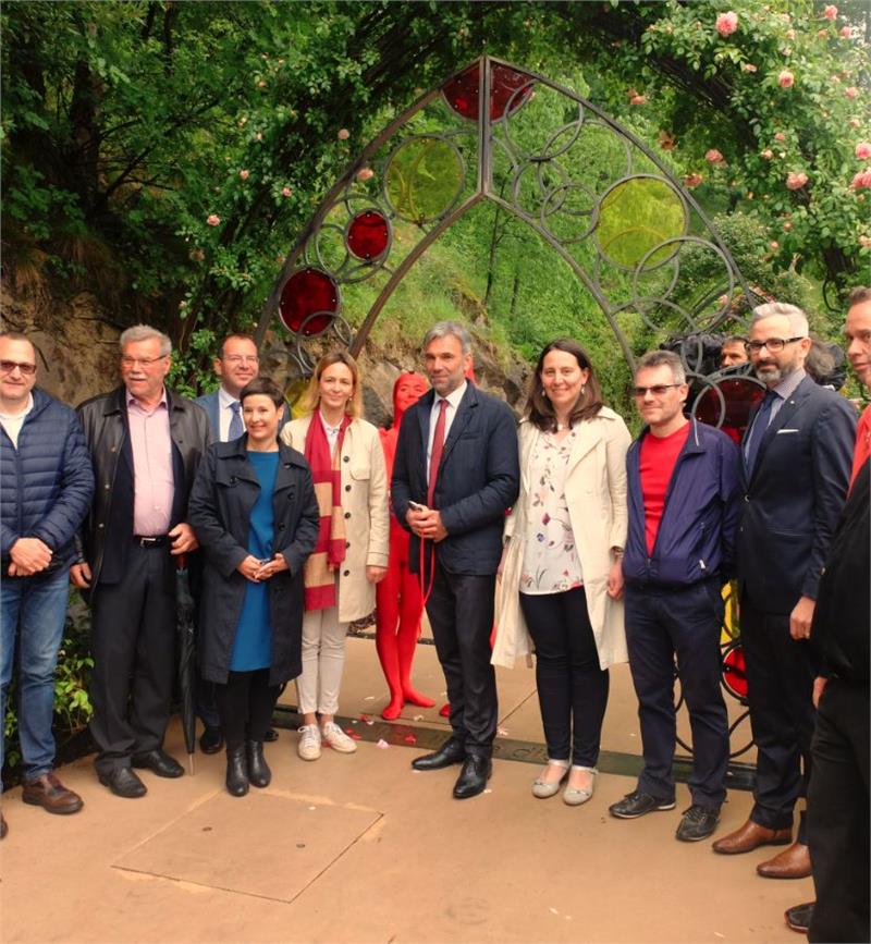 Landesrat Arnold Schuler hat in seiner Funktion als Präsident der Gärten von Schloss Trauttmansdorff den neuen Bereich eröffnet und darauf hingewiesen, dass der "Garten für Verliebte" die "Vision und Leistung symbolisiert, die hinter dem Erfolgsprojekt Trauttmansdorff stehen".