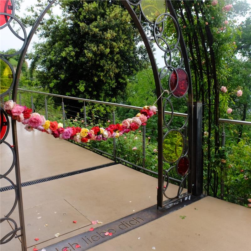 Das neue Gartenareal befindet sich hoch oben über der Aussichtsplattform von Matteo Thun; das Herzstück des Areals bilden drei Pavillons als überdimensionale Blumensträuße inmitten eines Wasserbassins. Besucherinnen und Besucher können dort ein Ritual in drei Schritten vollziehen: loslassen, versprechen, verewigen. Im neuen Gartenbereich treffen somit Pflanzen, Gestaltung und Interaktion über das Thema Liebe zusammen.