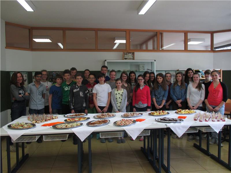Im Mai war es nun so weit: Die zweite Klasse der Fachschule Frankenberg bereitete mit Hilfe der Fachlehrerin Andrea Urban den Gewinnern ein buntes Jausenbuffet zu mit leckeren aber auch gesunden Snacks, z.B. selbst gebackenen Maisbrötchen, Fruchtspießen, Vollkornpizzette usw. Dazu gab es selbstgemachten Frankenberger Apfelsaft.