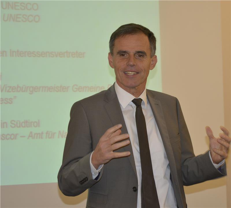 Piero Gianolla von der Universität Ferrara, Berater der Stiftung Dolomiten UNESCO, sprach über die Bedeutung der Aufnahme in die Welterbeliste, welche Eigenschaften diese Berggruppe zum Welterbe der UNESCO machen und die daraus folgenden Verpflichtungen. Umberto Martini von der Wirtschaftsfakultät der Universität Trient vertiefte hingegen das Thema Tourismus-Marken und Welterbeauszeichnung. Für die Glaubwürdigkeit der Marke müsse deren Inhalt mit dem Leitgedanken der UNESCO übereinstimmen, so der Experte.