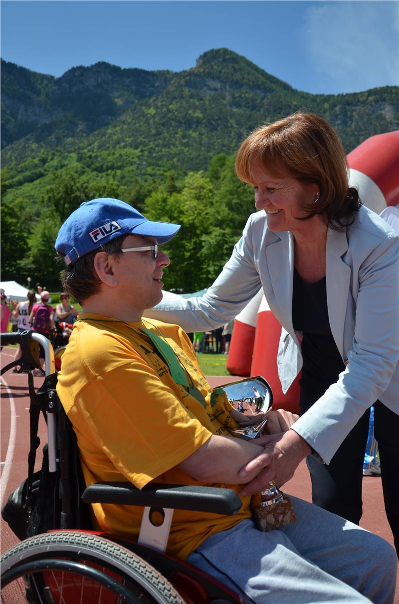 Am Vormittag konnten sich die sportbegeisterten Teilnehmer im 50-Meter-Lauf, im 100-Meter-Lauf, im Rollstuhllauf, im Weitsprung und im Vortex-Weitwurf messen. Parallel dazu bot sich den spielbegeisterten Menschen mit Behinderung die Möglichkeit, an verschiedenen Spielen – von Geschicklichkeitsspielen bis zu Aktionsspielen – teilzunehmen. Diese wurden von der Landesfachschule für Sozialberufe vorbereitet und begleitet. Nach einer Mittagspause fand die Prämierung durch die Sport- und Soziallandesrätin Martha Stocker und Familienlandesrätin Waltraud Deeg statt. Dabei erhielt neben den Siegern der verschiedenen Disziplinen auch jede teilnehmende Einrichtung sowie Gastmannschaft einen Teilnahmepokal. "Spiel, Sport und Bewegung tun uns allen gut: Menschen mit und ohne Behinderung", dankte Landesrätin Stocker dem engagierten Organisationskomitee für die wertvolle Initiative und "für die Momente der Lebensfreude, die ich bei eurem Spiel- und Sportfest immer wieder erleben darf." Landesrätin Deeg hob das Engagement der beteiligten Vereine und Organisationen hervor. "Es ist schön zu sehen, dass unser Ehrenamt so gut aufgestellt ist. Dank eures Engagements erleben Menschen mit Beeinträchtigungen, aber auch ihre Familien einen tollen, abwechslungsreichen und spannenden Tag, von dem man noch lange zehren kann."