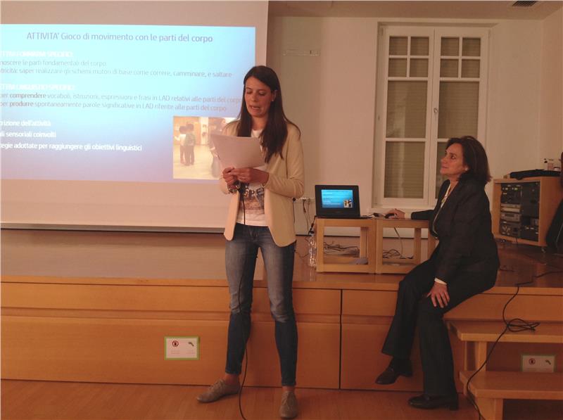 Luciana Favaro und Linda Meneghin von der Universität Ca' Foscari in Venedig zeigten Ziele und Strukturen des Bildungswegs im Kindergarten auf. Präsentiert wurden auch Didaktikeinheiten und Tipps aus der Praxis, und zwar von den Kindergärtnerinnen selbst. Über Reflexionen und Transfer in der Didaktik der ladinischen Kindergärten ging es in den Referaten von Luciana Favaro, Linda Meneghin, Hannelore Insam und Edith Ploner.