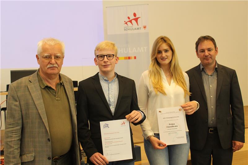 Simon Kienzl vom Franziskanergymnasien Bozen überzeugte auf ganzer Linie mit seinem Essay zu Aristoteles mit dem Titel "Die UnFreiheit des Willens". Zweite wurde Nicky Deluggi vom Sprachengymnasium Brixen, gefolgt von Franziska Pircher vom Realgymnasium Brixen. Die Erstgereihten durften an der Österreich-Runde in Salzburg und an der nationalen Ausscheidung in Rom teilnehmen, wo sie sehr gut abschnitten.