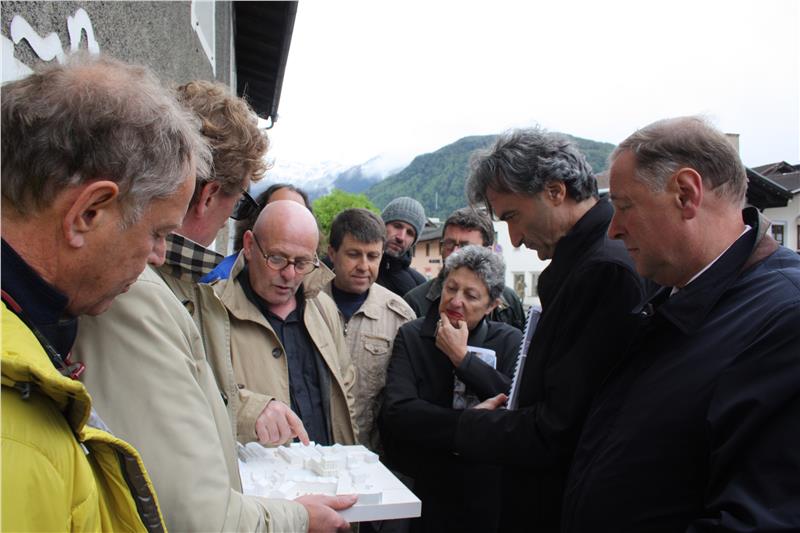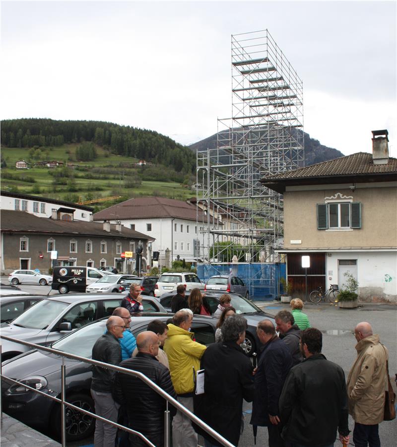 Beim Lokalaugenschein mit dem Landesbeirat für Baukultur und Landschaft in Sterzing waren neben Bauherr und Investor sowie Planer der Landessachverständige, der Direktor des Landesamtes für Landschaftsschutz, die Direktorin des Landsamtes für Denkmalpflege sowie der Sterzinger Bürgermeister und die Vertreter des Gemeinderats sowie des Bauamts anwesend.