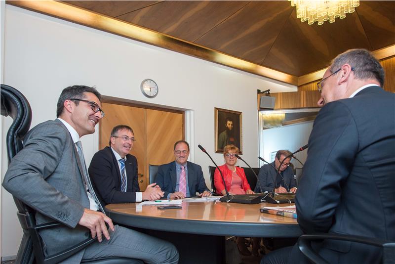 Über Minderheitenschutz und Minderheitenrechte im gesamtstaatlichen Kontext und im Lichte der geplanten Verfassungsreform, aber auch über den Schutz und die Pflege von Muttersprache und Kultur hat am gestrigen Abend Landeshauptmann Arno Kompatscher mit einer Delegation der slowenischen Minderheit gesprochen. Mit dabei war auch Bildungslandesrat Philipp Achammer. In der slowenischen Delegation waren sowohl die Konföderation der slowenischen Organisationen (svet slovenskih organizacij) mit Präsident Walter Bandelj, als auch die slowenische Kultur- und Wirtschaftsunion (Slovenska kulturno-gospodarska zveza) mit Präsident Rudi Pavšič vertreten.