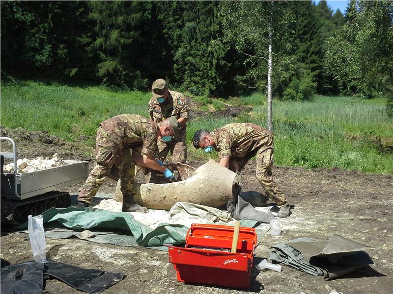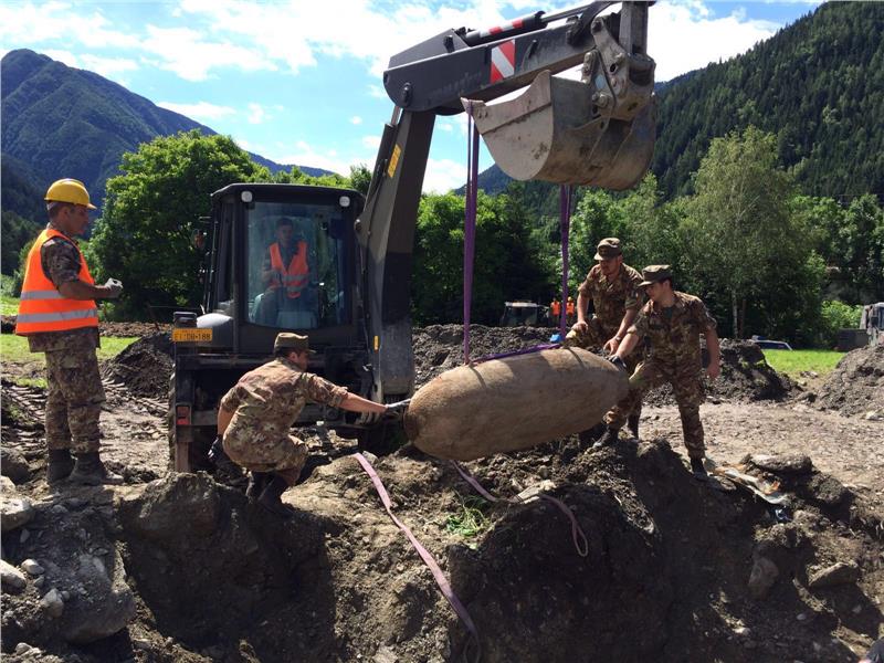 Um 7.39 Uhr beginnen zwei Teams von je drei Sprengstoffexperten des "secondo reggimento genio guastatori alpini", das unter dem Kommando von Oberst Luigi Musti steht, mit der Entschärfung erst der einen, dann der 30 Meter daneben aufgefundenen Bombe. Die erste Bombe ist um 9.20 Uhr durch die Entfernung beider Zünder entschärft und wird zum Pulverlager in Stilfes transportiert, mit Begleitschutz der Verkehrspolizei und der Freiwilligen Feuerwehren Stilfes und Trens mit Tankwagen. Um 9.56 Uhr werden die Arbeiten zur Entschärfung der zweiten Bombe in Angriff genommen und um 10.31 Uhr abgeschlossen. Nachdem der Transport mit der zweiten Bombe das Pulverlager in Stilfes erreicht hat, werden die Verkehrswege um 11.33 Uhr wieder geöffnet, da zu diesem Zeitpunkt das Sperrgebiet aufgehoben wird.