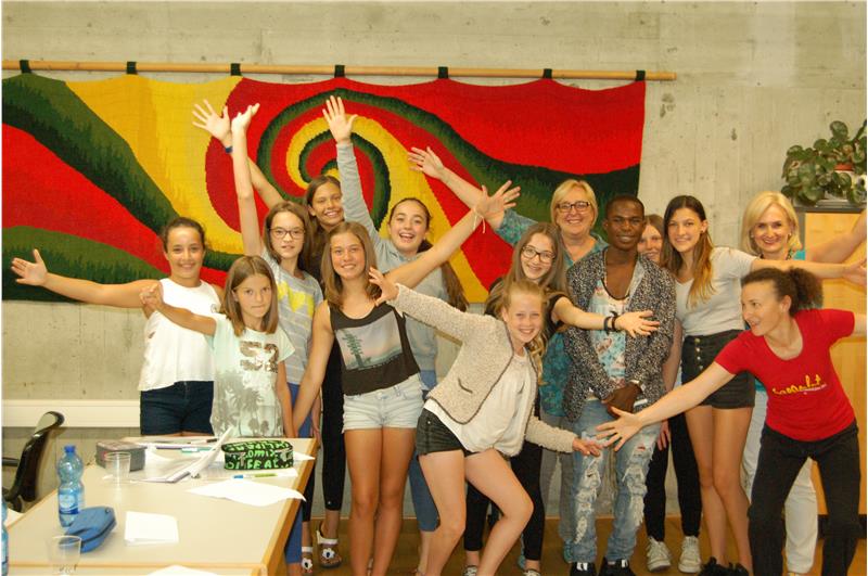 Der englischsprachige Workshop "Once upon time" bot den Mittelschülern ein breites Spektrum an Gesprächsstoff. Ziel war es, die Workshopteilnehmerinnen für Themen wie Ausländerfeindlichkeit, Freundschaft und "Brückenbauen" zu sensibilisieren. Durch Tanz, Gesang und Theater wurden Geschichten aus aller Welt den Schülerinnen nähergebracht. Am Mittwoch besuchte ein junger Flüchtling aus Ghana die Gruppe, um Geschichten aus seinem Land und seinem Leben zu erzählen.