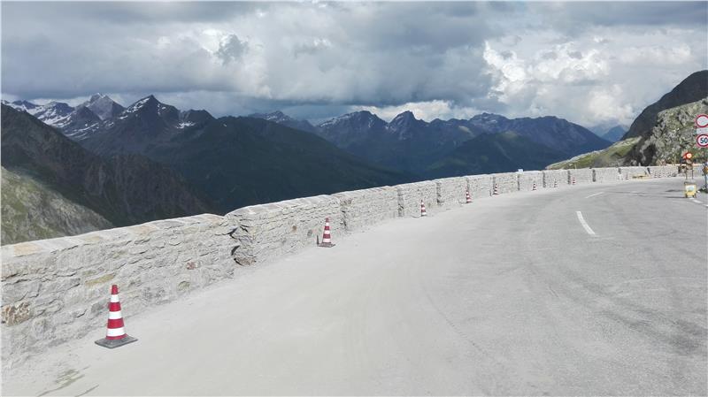 „Allein 3770 Laufmeter neue Leiteinrichtungen, davon 2110 Meter Stahlleitplanken und 1660 Meter Parapettmauern wurden in den vergangenen fünf Jahren entlang der Straße errichtet“, sagt der Direktor der Landesabteilung Straßendienst Philipp Sicher. Wie das Gestaltungskonzept vorsieht, wurden ab der Timmelsbrücke Parapettmauern aus Stein errichtet, die der Rückhaltekraft von Leitplanken entsprechen. Zwischen Moos und der Timmelsbrücke werden Stahlleitplanken angebracht. Sämtliche Eingriffe im Bereich erfolgen laut Abteilungsdirektor Sicher landesweit nach einer eigenen Prioritätenliste.