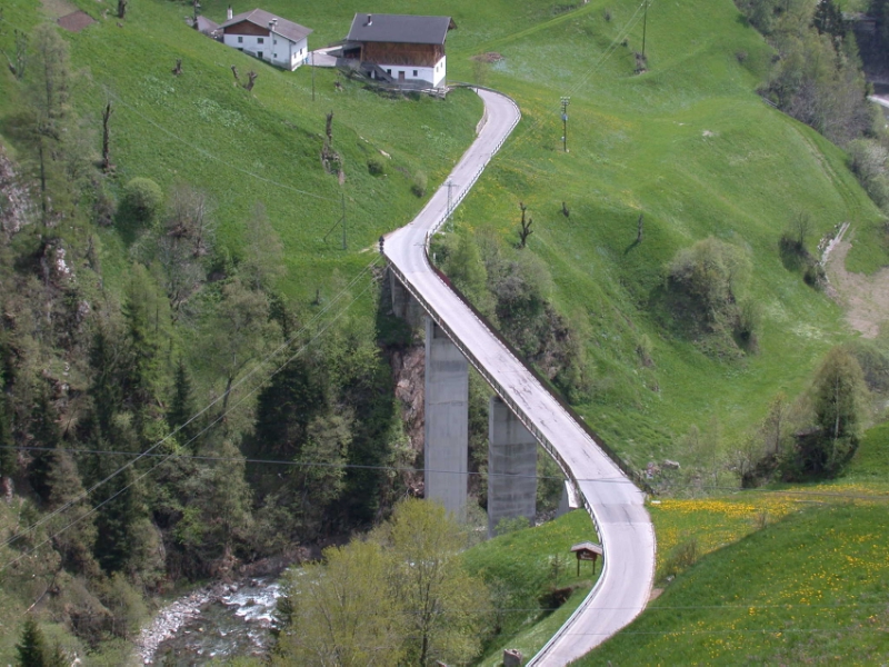 Voraussichtlich noch bis zum Spätsommer soll die im Mai in Betrieb genommene provisorische Umleitung aufrecht bleiben, sagt Augustin Hueber vom Landesamt für Straßenbau West. Die Umleitung beginnt beim E-Werk Schneebergbach. Von dort wird der Verkehr an der Passer entlang geführt, in der Nähe der zu sanierenden Brücke wird der Fluss mittels einer Behelfsbrücke überquert und dann durch den Zufahrtsstollen der Energiegenossenschaft E.U.M. zur bestehenden Straße hinaufgeführt.