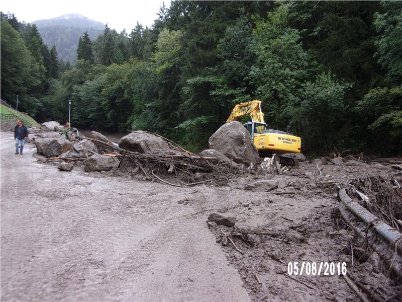 Finsterbach, Mundlbach und Eichbergbach waren über die Ufer getreten, die Straße nach Vernuer wurde verlegt, Schutzbauten und Infrastrukturen, Äcker und Wiesen wurden beschädigt. "Die Wasserschutzbauten", berichtet der Direktor des Amtes für Wildbach- und Lawinenverbauung West Mauro Spagnolo, "haben die Schäden in Grenzen gehalten". Gemeinsam mit Julius Staffller leitet er die Arbeiten, im Zuge derer das Bachbett des Mundlbaches geräumt wurde. Die Aufräumarbeiten im Bett des Finsterbaches sind noch im Gange, da sie sich wegen fehlender Zubringerstraßen schwieriger gestalten. Im Eichbergbach wird in den kommenden Wochen das Rückhaltebecken geräumt, das zum Schutz der Staatsstraße errichtet worden war.