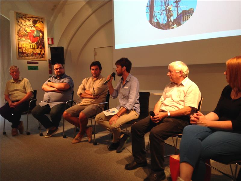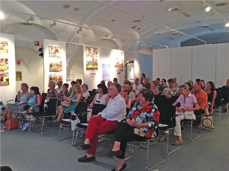 Bei der heutigen Eröffnung wurde auch der Dokumentarfilm "La magnifica avventura della Bertolazzi Film" in italienischer Sprache gezeigt. Realisiert wurde der Film von Franco Delli Guanti und Ludovico Maillet, die ebenfalls anwesend waren. Der 60-minütige Film zeigt die Geschichte des Filmstudios und lässt zahlreiche Zeitzeugen zu Wort kommen. Vorgestellt und an die Anwesenden verteilt wurde auch der Katalog, der zur Ausstellung erschienen ist.