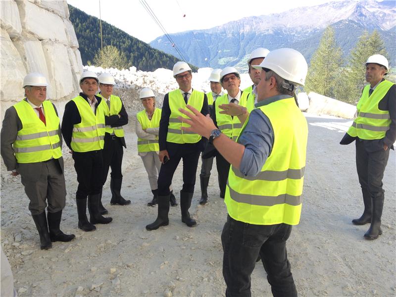 Jedes Jahr trifft sich die Südtiroler Landesregierung mit der gesamten Kantonalregierung von Graubünden, um gemeinsame Themen und mögliche überregionale Projekte zu besprechen. Ein Jahr finden die Gespräche im Kanton Graubünden statt, im nächsten in Südtirol – heuer hat die Südtiroler Landesregierung in die Tschenglsburg in Laas geladen. „Wir haben uns auch in diesem Jahr gefreut, der Einladung nach Südtirol Folge zu leisten und uns auf freundschaftlicher Basis mit der Südtiroler Landesregierung auszutauschen“, sagte der Regierungspräsident von Graubünden, Christian Rathgeb beim anschließenden Pressestatement auf dem Firmengelände der Lasa Marmor in Laas. Im Anschluss daran nutzte die Graubündner Delegation die Gelegenheit, den Jennwand-Marmorbruch zu besichtigen. Die Mehrheit der Lasa Marmor ist nämlich in den Händen von Schweizer Investoren und kann daher als eine Art Symbol der Verbindung beider Regionen angesehen werden.