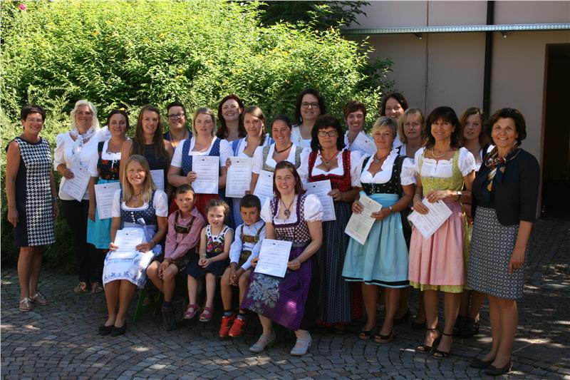 Ihre Ausbildung zur Tagesmutter haben kürzlich 21 Frauen aus ganz Südtirol abgeschlossen. Sie konnten in Dietenheim ihr Diplom entgegennehmen. Der Ausbildungslehrgang erfolgte in Zusammenarbeit der Sozialgenossenschaft "Mit Bäuerinnen lernen – wachsen – leben", der Landesfachschule für Soziale Berufe Hannah Arendt und der Fachschule für Hauswirtschaft und Ernährung Dietenheim. Die ausgebildeten Tagesmütter haben rund 450 Stunden Ausbildung genossen, davon 100 Stunden im Praktikum.