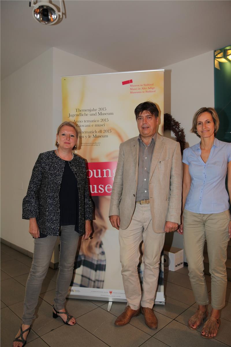 Junge Musik in den Landesmuseen: (v.l.) Karin Dalla Torre, Direktorin der Landesmuseen, Heinrich Unterhofer, Direktor des Bozner Konservatoriums und die Projektleiterin Ute Duregger