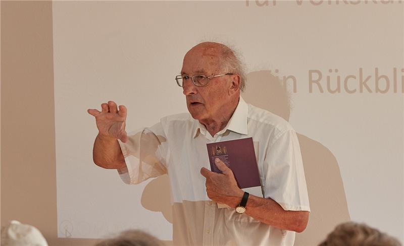 Der Initiator und langjährige Direktor des Volkskundemuseums, Hans Grießmair bei der Vorstellung seines Bandes - Foto: LPA/Hermann Maria Gasser