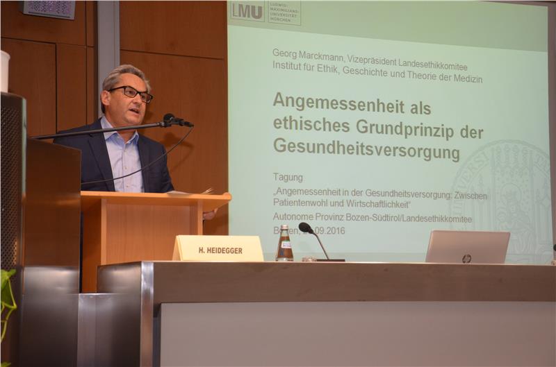 „In der Diskussion geht es um eine Medizin, wo weder zu viel noch zu wenig gemacht wird; es geht um die Wahl der besten Form der Versorgung für die Menschen“, unterstrich der Präsident des Landesethikkomitees Herbert Heidegger. Die Diskussion der Angemessenheit müsse daher auch in Südtirol geführt werden und sei eng mit der Ethik verbunden, zumal jeder Patient die beste Therapie für sich möchte. "Die Kluft zwischen dem, was medizinisch möglich ist, und dem, was wir finanzieren können, wird immer größer", erklärte Marckmann und nannte drei Lösungsmöglichkeiten: mehr ausgeben (wobei die finanziellen Mittel an anderer Stelle fehlen), eine Rationalisierung (Begrenzung der Leistungen vonseiten der öffentlichen Hand) oder eine Diskussion über die Angemessenheit in der Versorgung, denn "es ist nicht so, dass mit immer mehr auch immer das Richtige getan wird", so Marckmann. "Je mehr Verantwortung die Ärzte vor Ort im Einzelfall übernehmen, desto weniger Vorgaben braucht es", betonte der Institutsleiter.