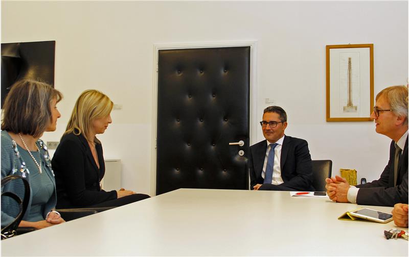 Die neue Präsidentin, Chiara Tanesini, Vizepräsident Andreas Cappello und Direktorin Mariaclara Pagano statten dem Landeshauptmann einen Antrittsbesuch ab.