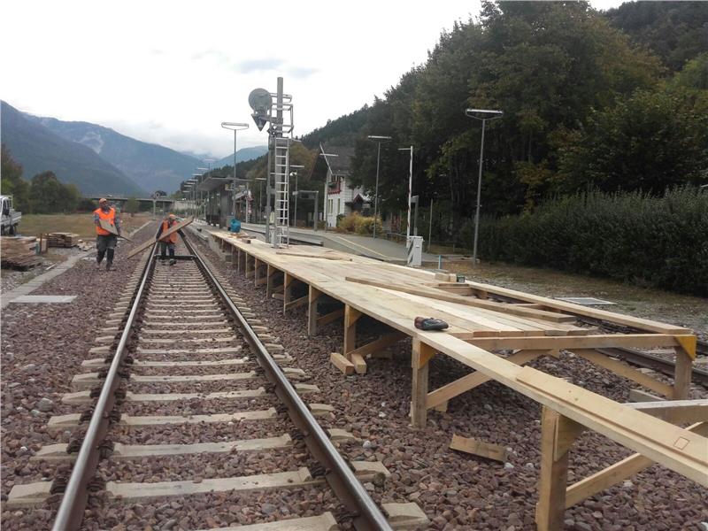 Mit der Verlängerung der Bahnsteige in Schlanders, Laas und Spondinig starten nun die ersten Arbeiten für die Elektrifizierung der Vinschger Bahn.