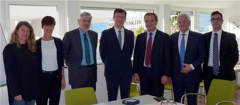 Am Donnerstag, 20. Oktober fand anlässlich eines Besuches des Generalsekretärs der Gesellschaft "Dante Alighieri" Rom in Südtirol auch ein Treffen mit Verantwortlichen der Südtiroler Schulbehörde statt. Schulamtsleiter Peter Höllrigl und der Direktor des Bereichs Innovation und Beratung, Rudolf Meraner, trafen mit dem Generalsekretär der Gesellschaft "Dante Alighieri" Rom, Alessandro Masi, sowie dem verantwortlichen Vertreter des Komitees Bozen, Giulio Clamer, zusammen, um die gute Zusammenarbeit durch die Verlängerung der bestehenden Vereinbarung zu bestärken.