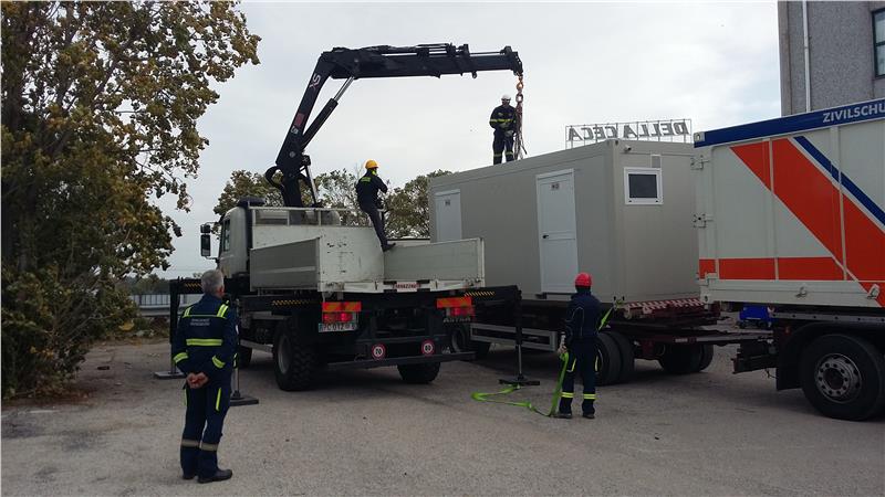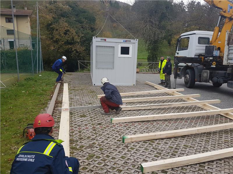 "Am Wochenende haben wir sechs Gemeinden in der Provinz Macerata in den Marken mit mobilen Büroeinheiten ausgestattet", berichtet der Direktor der Agentur für Bevölkerungsschutz Rudolf Pollinger: Im Laufe des Samstags wurden zehn Büroeinheiten von Montageteams des Bereiches Wildbach- und Lawinenverbauung sowie der Berufsfeuerwehr Bozen der Agentur für Bevölkerungsschutz zusammen mit Freiwilligen des Weißen Kreuzes und des Roten Kreuzes montiert. Zeitgleich wurde in Bozen bereits die nächste Lieferung vorbereitet. In der Nacht auf Sonntag wurden die restlichen der insgesamt 16 Bürocontainer nach Macerata zur Verteilung angeliefert, mit an Bord war auch ein Sanitärcontainer mit Duschen und Toiletten für eine Notunterkunft in der Ortschaft Tolentino.