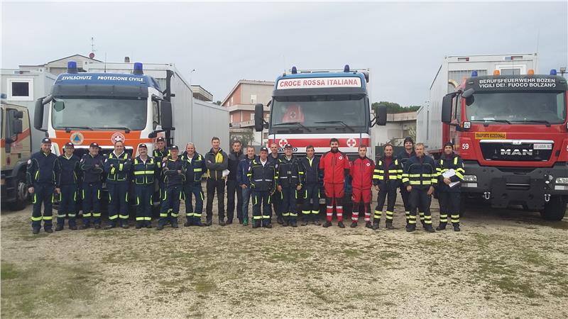 Am Freitagabend (4. November) startete der erste Südtiroler Hilfszug vom Sitz der Landesagentur für Bevölkerungsschutz in Bozen Richtung Mittelitalien, zusammengesetzt aus Fahrzeugen und 19 Mitarbeitern der Landesagentur für Bevölkerungsschutz mit Wildbach- und Lawinenverbauung, der Berufsfeuerwehr Bozen und den Rettungsorganisationen Weißes und Rotes Kreuz; in den frühen Morgenstunden des 5. November wurden die Zielgemeinden in der Erdbebenregion Macerata erreicht.