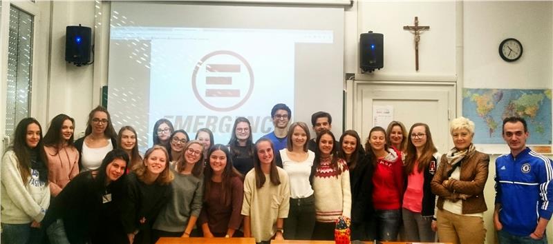 Schüler des Sozialwissenschaftlichen Gymnasiums "Maria Hueber" und des Sprachengymnasiums "Marcelline" in Bozen lernen von- und miteinander.