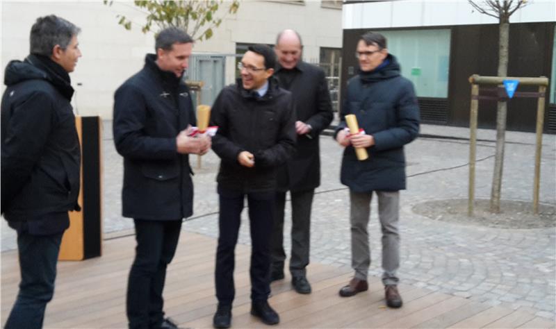 Bei einer Feierstunde wurde der neu gestaltete Universitätsplatz im Beisein von Bautenlandesrat Christian Tommasini, Stadtrat Luis Walcher und dem Rektor sowie dem Direktor der Freien Universität Bozen Walter Lorenz und Günther Mathà sowie den Technikern und Planern am 15. November eröffnet.