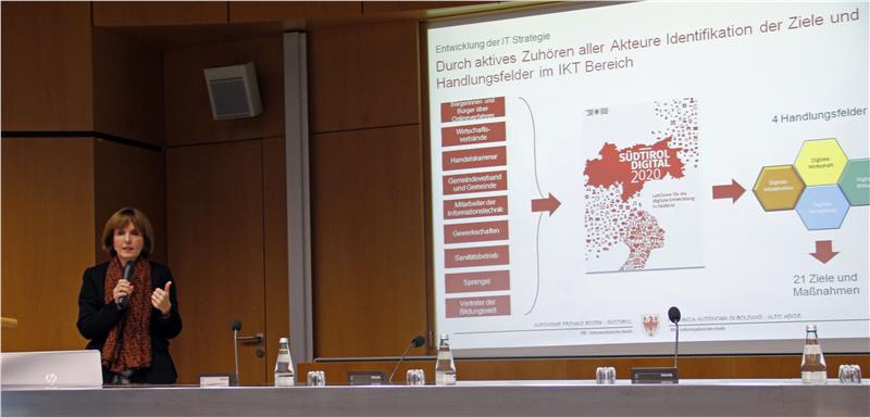 "Wir befinden uns in einer Zeit großer Veränderung, die zu Verunsicherung führt", gab Landeshauptmann Arno Kompatscher zu Beginn der Führungskräftetagung im Pastoralzentrum in Bozen zu bedenken. "Es gilt, den digitalen Wandel sinnvoll zu gestalten, Vertrauen zu schaffen und im öffentlichen Auftrag das Beste für Land und Leute herauszuholen", so Landeshauptmann Kompatscher. Er betonte, dass die Digitalisierung eine große Chance biete, denn sie ermögliche es, auch die peripheren Gebiete zu erreichen. "Vereinfacht gesagt geht es um den Erhalt der Arbeitsplätze und der Lebensqualität", brachte es IT- und Verwaltungslandesrätin Waltraud Deeg auf den Punkt, "denn wenn wir es schaffen, die Technologie in die Peripherie zu bringen, dann werden die dezentralen Standorte wieder für die Betriebe attraktiv". In ihren Ausführungen verwies Landesrätin Deeg auf das Strategiepapier zur digitalen Entwicklung Südtirols "SD 2020" und auf das Gesetz zur offenen Verwaltung, welches die Digitalisierung der Dienste vorsieht, um Bürgern und Unternehmen einen raschen und einfachen Zugang zur öffentlichen Verwaltung zu bieten. "Der erste Schritt ist es, zu sehen, welche Prozesse hinter der Digitalisierung stehen, was wir streichen und vereinfachen können", meinte Deeg, "und wichtig ist es auch, die Menschen im Prozess der Digitalisierung mitzunehmen und zu begleiten".