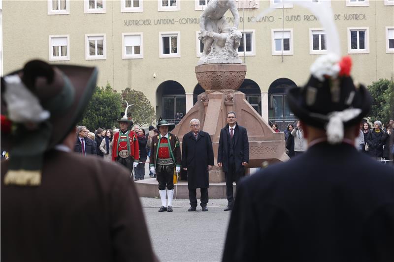 Bei dem Treffen im September vergangenen Jahres in Brüssel hatte EU-Kommissionspräsident Jean-Claude Juncker Landeshauptmann Arno Kompatscher die Zusage gegeben, Südtirol im Rahmen einer Europatagung einen Besuch abzustatten. Heute hat der Präsident der Europäischen Kommission sein Versprechen eingelöst und ist nach Bozen gekommen, um an der Tagung "70 Jahre Pariser Vertrag: Autonomie und Föderalismus in Europa" teilzunehmen. Um 10.30 Uhr traf Jean-Claude Juncker in der Landeshauptstadt ein, wo ihm am Silvius-Magnago-Platz ein landesüblicher Empfang bereitet wurde.