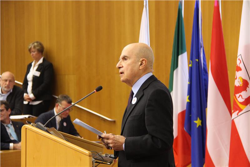 Jens Woelk, Professor für Vergleichendes Verfassungsrecht an der Uni Trient, Forscher an der Europäischen Akademie in Bozen und Forscher im Bereich Föderalismus, Regionalismus und Minderheitenrecht sprach über ein Jahrzehnt regionale Zusammenarbeit in der EU im Allgemeinen und der Europaregion Tirol-Südtiol-Trentino als europäischen Verbund für territoriale Zusammenarbeit im Besonderen. Woelk beschrieb die Überwindung von Grenzen als Symbol für die europäische Integration und verwies auf das große Potential hinsichtlich der Zusammenarbeit in vielen Bereichen. Obwohl die Europaregion ein effizientes Instrument zur grenzüberschreitenden Zusammenarbeit sei, müsse aber auch das Verhältnis zu den Staaten und zu Europa gepflegt werden, so Woelk.