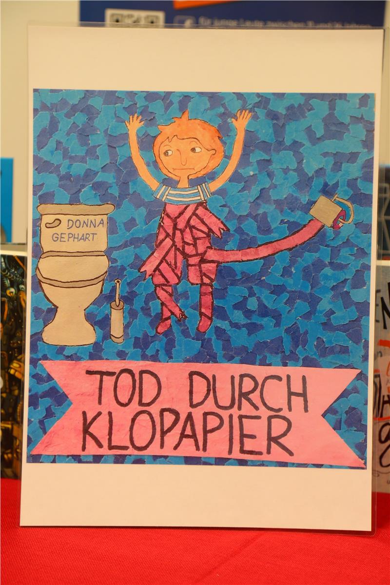 Nadine Dapoz hat einen Entwurf zum Buch "Tod durch Klopapier" von Donna Gephart gestaltet. In der Begründung der Jury für die Zuerkennung des Kreativpreises heißt es: "Das Bild ist raffiniert gestaltet, gut umgesetzt und macht neugierig auf das Buch und den Inhalt. Es lässt viele Assoziationen zu, passt zum Titel und ist eine stimmige, sehr originelle und schöne Gesamtkomposition."