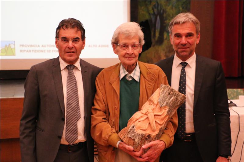 "Die Waldzustandserhebung", unterstrich der Direktor der Abteilung Forstwirtschaft Paul Profanter, "ist eine der wichtigsten institutionellen Aufgaben des Forstdienstes, deshalb wurde 1976 der neue Forstschutzüberwachungsdienst aufgebaut". Von Anfang an dabei war der Entomologe Klaus Hellrigl, der heute einen Überblick über seine zahlreichen Forschungen und Publikationen gab: Von der Traubenkirschen-Gespinstmotte, deren Gespinste als Leinwand zum Malen verwendet wurden, über die Bekämpfung der Forstschädlinge mit Schwingfeuergeräten und Nebelkerzen bis zum Kompendium über die Forstschädlinge und die Waldkrankheiten mit über 300 Seiten. Der stellvertretende Leiter des Amtes für Forstverwaltung Stefano Minerbi gab einen Überblick über die Waldschadensforschung und die Überwachung, vom sauren Regen 1981 über Pilzproben für Radioaktivitätsmessungen nach der Nuklearkatastrophe von Tschernobyl 1986 bis zur Erfassung des Waldzustandes mittels Laserscanner. Das Waldökosystem ist eine Schatztruhe der Artenvielfalt. Alessandro Andriolo vom Amt für Forstplanung vermittelte einen Einblick in die Datenbank für Forstschädlingsmeldungen und stellte eine Applikation zur Meldung von Waldschäden vor.