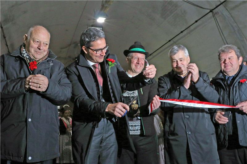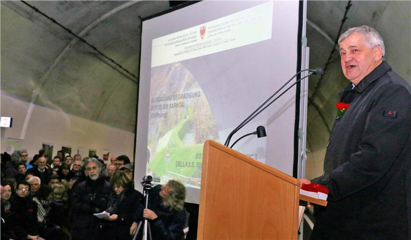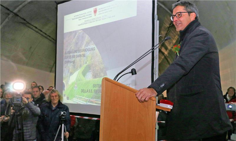 Mit dem Banddurchschneiden durch Landeshauptmann Kompatscher und Landesrat Mussner wurde der neue Straßenabschnitt symbolisch eröffnet. Zuvor hatte Paul Lantschner den neuen Verkehrsweg gesegnet und unterstrichen, dass Tunnels Wege bauen zu Menschen, um sich in Frieden zu begegnen. Bei der Feierstunde waren neben den Sarner Bürgern und verschiedenen Vereinen auch zahlreiche Gemeindevertreter aus ganz Südtirol und Vertreter der Ordnungskräfte sowie Alt-Landeshauptmann Luis Durnwalder und Altsenator Alois Kofler mit dabei.