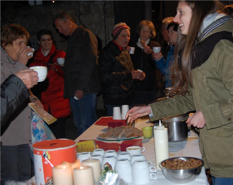 Die Tisner Rorate-Besucher erwartete nach der Messfeier eine junge Überraschung. Schülerinnen der Fachschule für Hauswirtschaft und Ernährung Frankenberg empfingen sie mit selbstgebackenem Adventbrot und dampfender Apfel–Erdäpfel-Suppe, begleitet von ihrem engagierten Radiofeature "Essen macht etwas…".