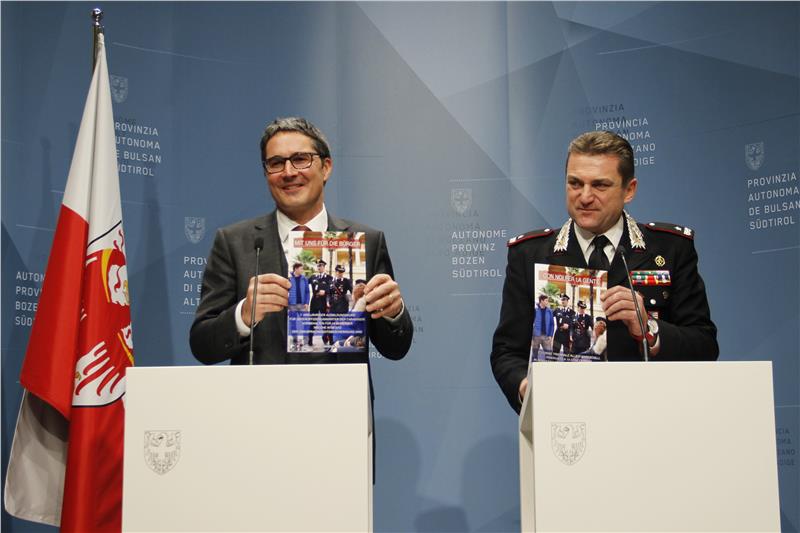 Am heutigen Freitag, 30. Dezember, wurde im gesamtstaatlichen Gesetzesanzeiger, der Gazzetta Ufficiale, ein Stellenwettbewerb zur Anwerbung von 14 Unteroffiziersanwärtern (Marescialli) veröffentlicht, der sich ausschließlich an Bewerber mit Zweisprachigkeitsnachweis richtet. Der Kommandant der Carabinieri-Legion Trentino Südtirol, General Massimo Mennitti, und Landeshauptmann Arno Kompatscher haben den "Südtiroler" Carabinieri-Stellenwettbewerb heute im Landhaus 1 in Bozen gemeinsam vorgestellt.