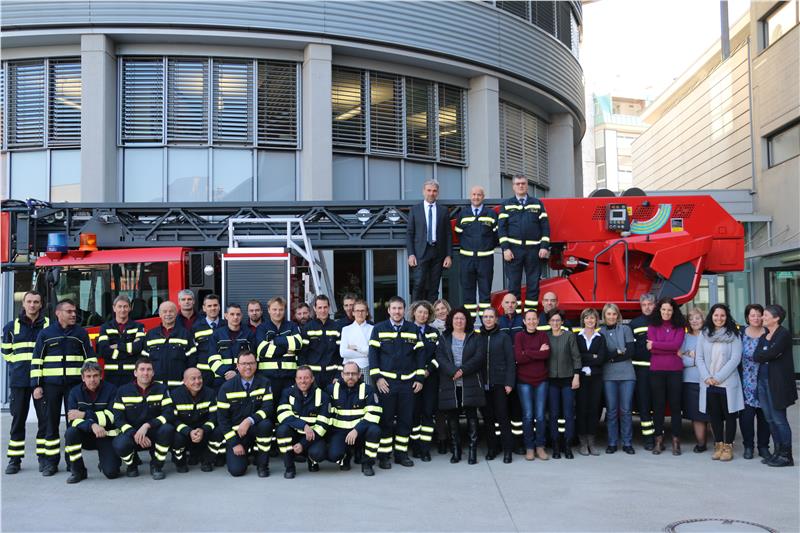 Zivilschutzlandesrat Arnold Schuler überraschte Kommandant Ernst Preyer auf der Feuerwache in der Drususallee in Bozen, als dieser sich gerade von seinen Offizieren, dem Verwaltungspersonal und der diensthabenden Wachmannschaft verabschiedete. Mit dem Abgang von Kommandant Preyer, unterstrich Landesrat Schuler, "geht eine Ära zu Ende, die prägend für die Berufsfeuerwehr und das Rettungswesen war". Es sei sehr wichtig gewesen, dass Preyer die Veränderungen aktiv und positiv begleitet habe. Die Berufsfeuerwehr, hob der Zivilschutzlandesrat hervor, sei eingebettet in ein Netzwerk, und im Fall des Siliziumwerkes Solland Silicon in Sinich habe sich gezeigt, wie wichtig Vernetzung und Zusammenarbeit seien. Landesrat Schuler bedankte sich beim scheidenden Kommandanten Preyer für die sehr gute Zusammenarbeit, die auch durch Harmonie auf persönlicher und menschlicher Ebene geprägt war.