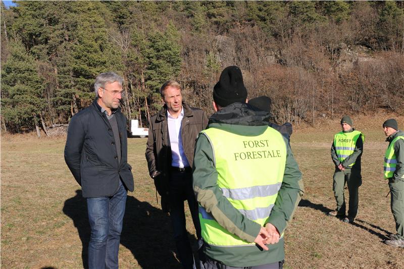 Mit dem Direktor des Forstinspektorates Bozen 1 Martin Schöpf und dem Einsatzoffizier der Berufsfeuerwehr Martin Gasser besprachen Landesrat Arnold Schuler und Ressortdirektor Klaus Unterweger am Löschweiher in Seit die Situation. Mit 100 Hubschrauberflügen gestern und 50 heute wurden je Flug 800 bis 900 Liter Wasser mit brandhemmendem Mittel abgeworfen, zudem wurden auch Einsatzkräfte und Material in ads unwegsame Geläde gebracht. Beim letzten Hubschrauberflug mit Löschwasser kurz vor 15.00 Uhr galten 95 Prozent des Brandes als gelöscht; trotzdem wird heute noch eine Nachtwache eingesetzt. Landesrat Schuler zeigte sich beeindruckt von der Leistung der Einsatzkräfte in extrem schwierigem Gelände: "Es hat sich wieder gezeigt, wie gut im Ernstfall die Zusammenarbeit zwischen den einzelnen Behörden und Freiwilligen wie auch privaten Unternehmen schnell und reibungslos funktioniert; auch in der Nacht wurde die Brandwache garantiert, und das in einem Gelände, wo es schon bei Tag schwierig und gefährlich ist, sich zu bewegen".