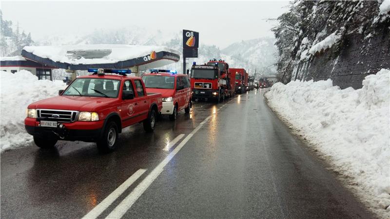 Die Einsatzkräfte der Berufsfeuerwehr, der Wildbachverbauung, des Straßendienstes und der Freiwilligen Feuerwehren sind mit den Geräten und Fahrzeugen in den Ortschaften Ascoli Piceno, Acquasanta Terme, Palmiano, Roccafluvione, Montemonaco und Montefortino in der Provinz Ascoli Piceno unterwegs.