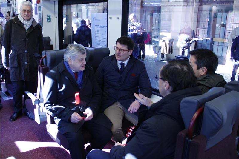 Jetzt und in den kommenden Wochen nimmt Trenitalia schrittweise weitere sieben neue FLIRT-Züge in Betrieb, wie im 2015 abgeschlossenen Dienstvertrag zwischen Land und Trenitalia vorgesehen. Einer dieser neuen Züge wurde am 23. Jänner am Bahnhof in Bozen vorgestellt, und zwar vom Direktor der regionalen Bahndienste von Trenitalia im Bereich Personentransport Orazio Iacono, Trenitalia-Regionaldirektor Roger Hopfinger und Mobilitätslandesrat Florian Mussner.