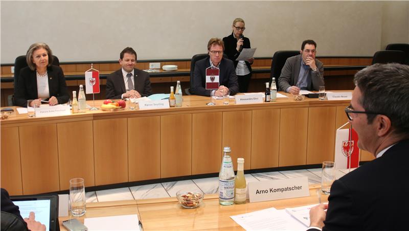 Heute (27. Februar) haben sich Landeshauptmann und Wirtschaftslandesrat Arno Kompatscher und die Wirtschaftslandesräte von Tirol und dem Trentino, Patrizia Zoller-Frischauf und Alessando Olivi, im Landhaus 1 in Bozen getroffen, um Möglichkeiten der grenzenüberschreitenden Kooperation ausfindig zu machen und um Synergien sowie EU-Förderungen zu nutzen.