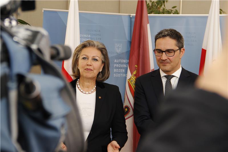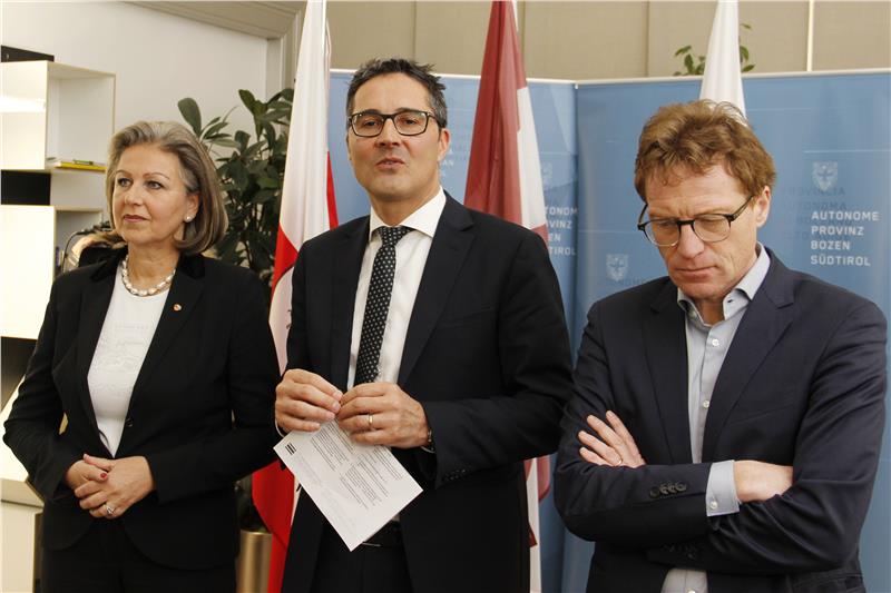 Die drei Wirtschaftslandesräte haben am Ende des gemeinsamen Treffens ein Pressestatement abgegeben. „Wir arbeiten bereits in vielfältigen Bereichen zusammen, beispielsweise in der Lehrlingsausbildung. Aber gerade dort, wo es eine kritische Masse zu erreichen gilt, möchten wir noch intensiver zusammenschauen“, sagt Landeshauptmann Kompatscher.
