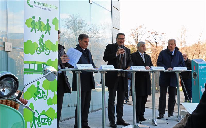 Südtirol soll sich zu einer Modellregion für nachhaltige alpine Mobilität entwickeln. Dafür bündeln die Ressorts für Wirtschaft, Energie und Umwelt sowie Mobilität und Verkehrsnetz nun ihre Kräfte. Die ersten konkreten Schritte zur Umsetzung des umfangreichen Maßnahmenpakets für nachhaltige Mobilität unter dem Leitthema #smartunterwegs haben Landeshauptmann Arno Kompatscher, Umweltlandesrat Richard Theiner, Mobilitätslanderat Florian Mussner, Green-Mobility-Koordinator Harald Reiterer und Alperia-Generaldirektor Johann Wohlfarter am 2. März in Bozen präsentiert. Die breite Palette an Maßnahmen reicht dabei von der Förderung des Radfahrens über den Ausbau der öffentlichen Verkehrsmittel bis hin zu jener der Elektromobilität. Ausgearbeitet hat den umfassenden Entwicklungsplan die eigens von der Landesregierung eingesetzte Arbeitsgruppe „Green Mobility“. „Verkehr vermeiden, verlagern und verbessern sind für diese Entwicklung die tragenden Säulen“, unterstrich Landeshauptmann Kompatscher. Der Klimawandel sei Realität und um die Umwelt für nachfolgende Generationen zu erhalten, brauche es Maßnahmen, so Kompatscher und griff das Thema „Verkehr verbessern“ auf. „Mit einer Ankaufsprämie von 4000 Euro auf standardisierten Listenpreis von Elektroautos, also 2000 Euro vom Land und 2000 Euro von den Autohändlern, wollen wir eine zukunftsgerichtete Kaufentscheidung anregen“, betonte Kompatscher. Einzige Voraussetzungen für den Preisnachlass sind die Ansässigkeit des Käufers in Südtirol und Immatrikulierung des Fahrzeugs in Südtirol. Zusätzlich gibt es laut Landeshauptmann fünf Jahre Befreiung von der Autosteuer und danach ist für den Besitzer nur 22,5 Prozent des normalen Steuersatzes zu bezahlen. Im Weltjahr für den nachhaltigen Tourismus solle der Respekt für die Umwelt auch in die Tourismuswerbung einfließen, so Kompatscher.