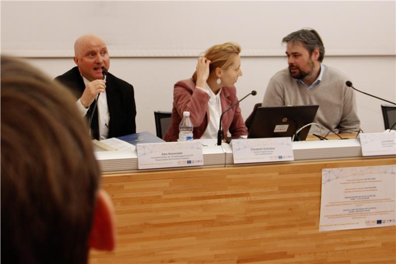 Über die Teilnahmevoraussetzungen und die Teilnahmebedingungen, das Informationssystem und die Mindestanforderungen für die Akkreditierung informierten anschließend Luca Storti und Stefano Zanotelli vom Bereich Verwaltung des ESF-Amtes.