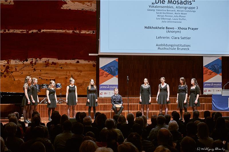 Unter den Südtiroler Wettbewerbsteilnehmern wurden drei Solisten ausgewählt: Romana Forer (Flöte, Lehrerin Monica Crazzolara, Musikschule Bruneck) Marlene Rainer (Blockflöte, Lehrerin Verena Comploj, Musikschule Brixen), Luca Moranduzzo (Klarinette, Lehrerin Alexandra Pedrotti), das Vokalensemble "Die Mosadis" (Valentina Bernardi, Miriam Costalunga, Sarah Gschlieser, Maria Moser, Miriam Pernter, Julia Ploner, Lea Silbernagl, Laura Stufer und Julia Untermarzoner, Lehrerin Clara Sattler, Musikschule Bruneck) und das Klavierduo "Black & White" (Flora Stecher Alonso Lillo und Laurin Wenter, Lehrerin Margrit Schild, vormals Klavierlehrerin der Musikschule Meran) begeisterten mit ihren Programmbeiträgen das Publikum.