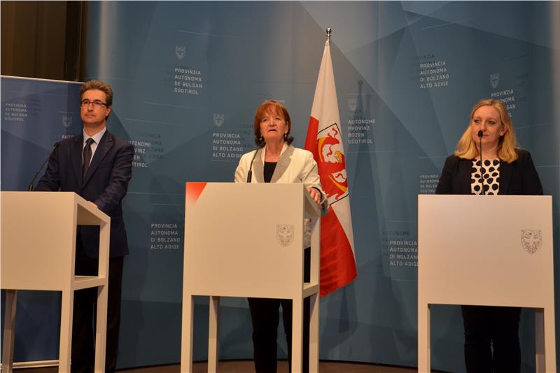 Die geplante Einrichtung 20 zusätzlicher Apotheken in Südtirol ist auf der Zielgeraden: Die Landesregierung hat gestern die Zonen der zu errichtenden Apotheken festgelegt. „Damit haben wir nun die Voraussetzung geschaffen, um die neuen Apotheken auf der Grundlage der bereits genehmigten Rangordnung zuweisen zu können“, betonte Gesundheitslandesrätin Martha Stocker. Gemeinsam mit dem Präsidenten der Apothekerkammer, Maxim Liebl, und der Direktorin der Landesabteilung Gesundheit, Laura Schrott, informierte sie heute (3. Mai) im Landhaus 1 in Bozen über die weitere Vorgehensweise.