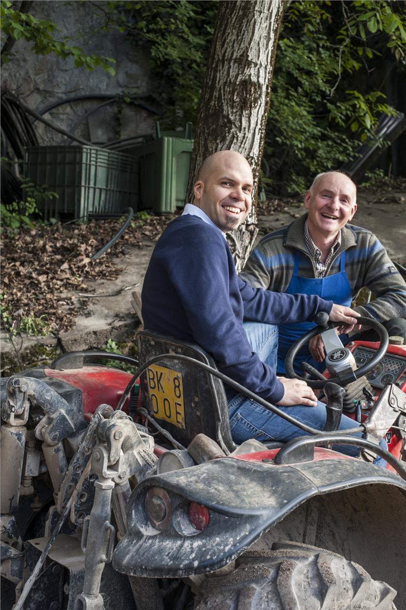 Marco Insam vom Hockey Club Bozen und Walter Zambaldi vom Teatro Stabile werben für das Sprachvolontariat – und sind auch bei der Feier am 25. Mai anwesend.